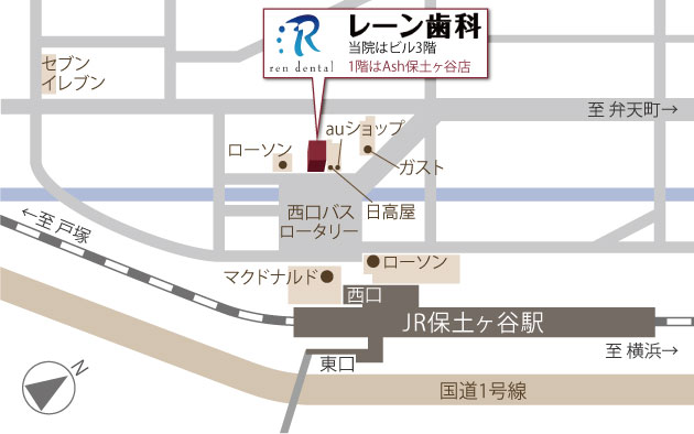 - 保土ヶ谷駅西口のロータリーに面しており、1階に美容室Ash、2階に臨海セミナーが入ってるビルの3階です。