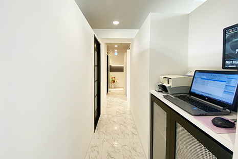 - 各診療室へ通じる廊下です。清潔感のある歯科医院造りが当院のモットーです。
